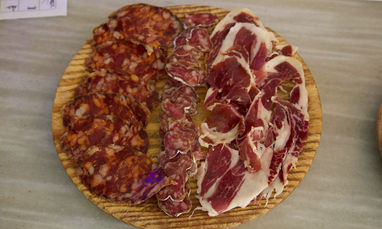 Pollo, jamón ibérico, Bacalao, Escalivada y queso.